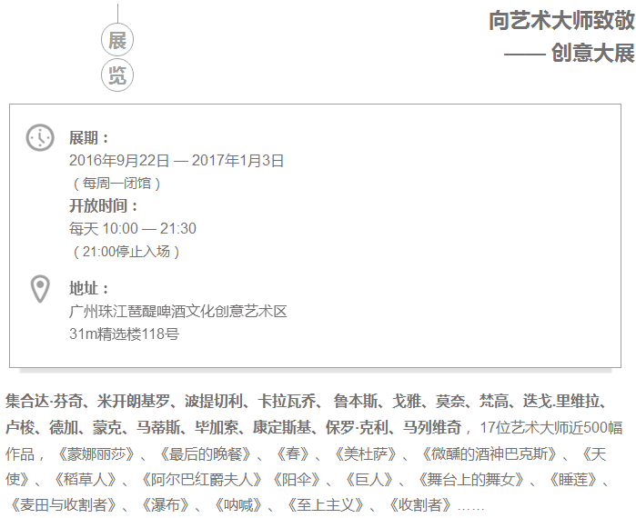 國(guó)內(nèi)知名藝術(shù)家共同策展,以專(zhuān)業(yè)視角將歐洲14世紀(jì)文藝復(fù)興時(shí)期至當(dāng)代17位全球最著名的藝術(shù)大師作品進(jìn)行藝術(shù)凝練,以創(chuàng)意生動(dòng)的動(dòng)態(tài)解析方式傳遞國(guó)際藝術(shù)美學(xué),走進(jìn)藝術(shù)長(zhǎng)河,一次看遍西方美術(shù)史。