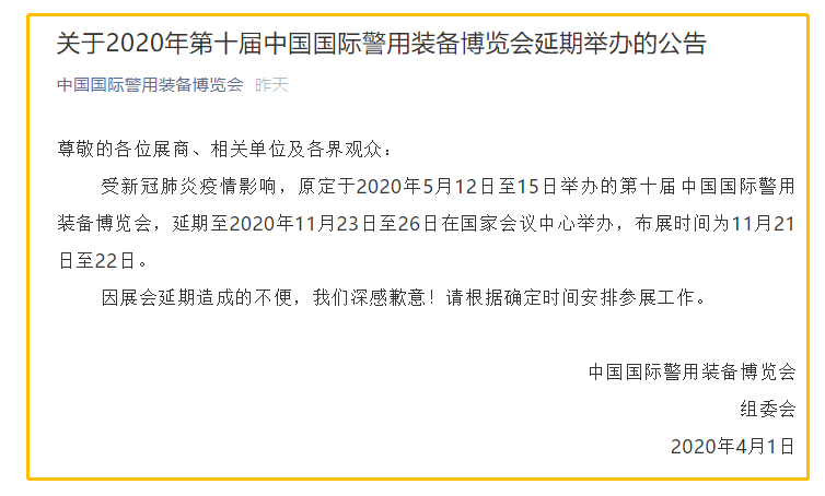 根據(jù)警博會設(shè)計搭建公司領(lǐng)藝展覽了解到,受新冠肺炎疫情影響,原定于2020年5月12日至15日舉辦的第十屆中國國際警用裝備博覽會,延期至2020年11月23日至26日在國家會議中心舉辦,布展時間為11月21日至22日。如需警博會設(shè)計請聯(lián)系領(lǐng)藝展覽,希望我們能在警博會搭建上為您添磚加瓦,祝各位朋友收獲多多,滿載而歸!