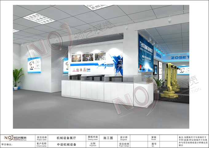 契合的中設(shè)機(jī)械品牌形象和產(chǎn)品特性,采用矩形結(jié)構(gòu),再搭配燈具燈光的效果,襯托出展位高端、時(shí)尚的氛圍,突出一種現(xiàn)代、大氣的時(shí)尚品味。